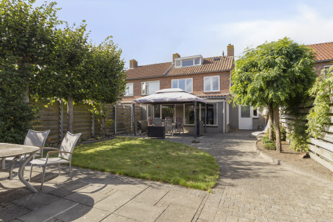 De tuin ligt ideaal op het zuidoosten en biedt daardoor van 's ochtends tot laat in de middag volop zon. Met een diepte van maar liefst 16 meter kun je hier makkelijk je favoriete plekjes creëren om te ontspannen, spelen of te genieten van gezellige barbecue-avonden met vrienden of familie. Direct achter de woning ligt een royale overkapping van ongeveer 17 m² die bijna aanvoelt als een tweede woonkamer. Dankzij de goede isolatie, stopcontacten en een op maat gemaakt zeil, kun je hier bijna het hele jaar door comfortabel zitten, zelfs met wat minder mooi weer.